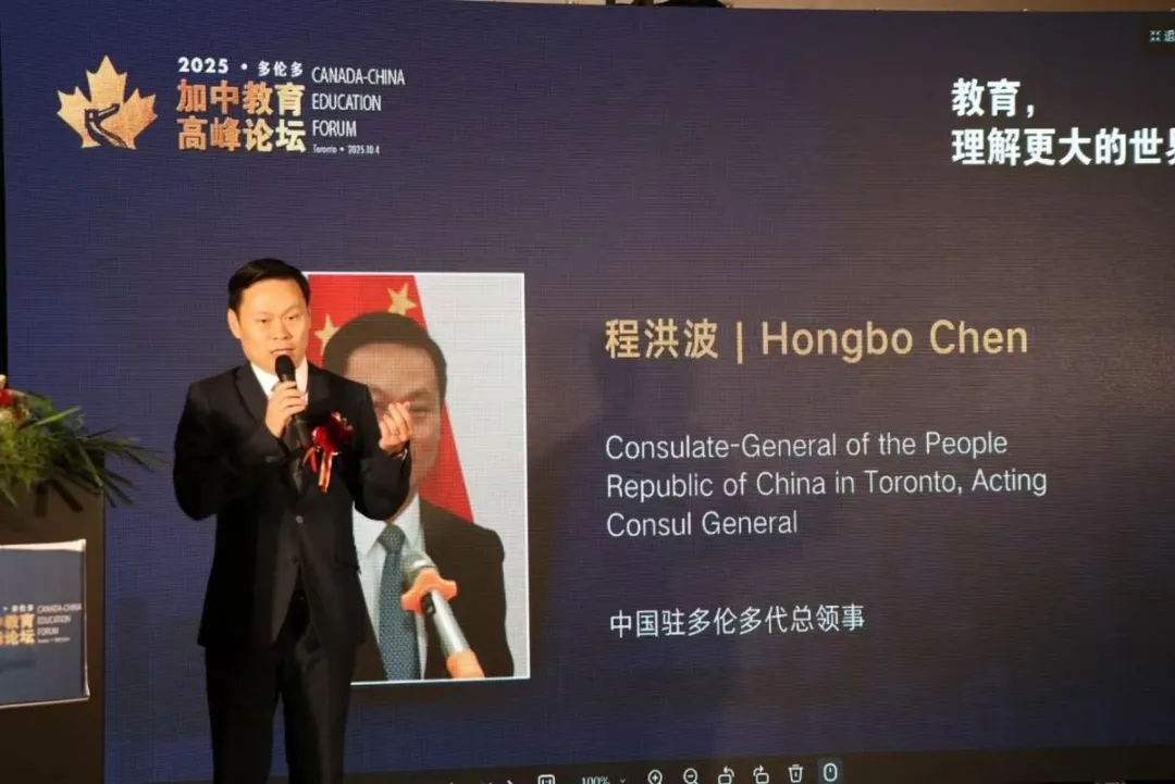 中国驻多伦多代总领事程洪波在致辞中表示,教育在应对全球性挑战、促进可持续发展中发挥着不可替代的作用。“教育既是文明的根,也是推动社会进步的动力,”他说,“正是基于对知识力量的坚定信念,各国才能携手共建更加包容、更加可持续的未来。”
